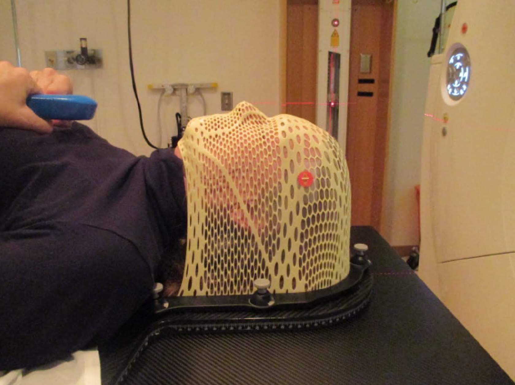 For WBRT treatment, a variety of commercially available head immobilization devices are used, most commonly thermoplastic masks with a custom headrest. For more precise positioning, which is generally not required for whole-brain radiotherapy, a more rigid stereotactic thermoplastic mask may be employed.
